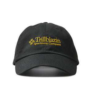 ADJUSTABLE BLACK DAD CAP FEATURING AN EMBROIDERED SPORTSWEAR COMPANY DESIGN ACROSS THE FRONT. EMBROIDERED BY US, METICULOUSLY AND IN OUR STUDIO IN PORTLAND.