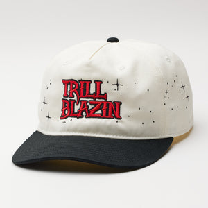 IT'S THE 2025-2026 SEASON OPENER! THIS DROP IS ON OUR LATEST MID-PROFILE WASHED SNAPBACK AND FEATURES A 3 QUARTERS WRAP GALAXY EMBROIDERED WITH A BOLD "TRILLBLAZIN" ACROSS THE FRONT.