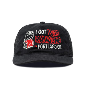 WAKE UP SHEEPLE. COME PARTY IN WAR RAVAGED PORTLAND IN OUR BRAND NEW CORDUROY TRUCKER CAP. THINK VINTAGE TRUCKER.